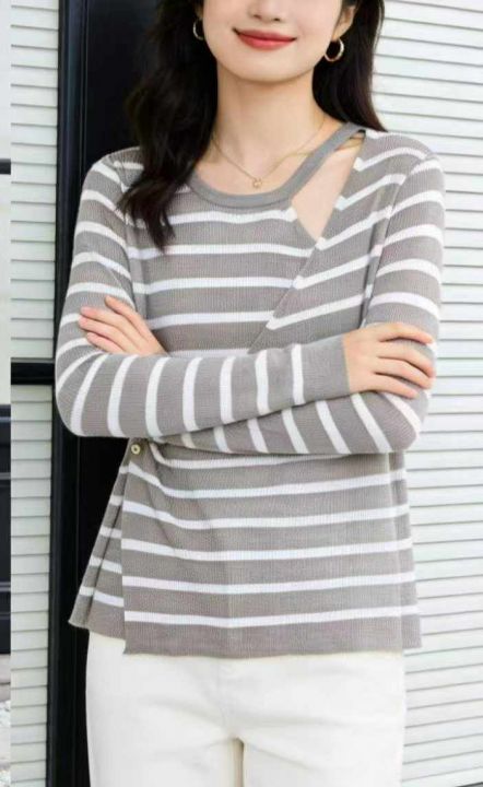 秋冬新款撞色条纹宽松设计款韩系套头羊毛衫,独立包装...