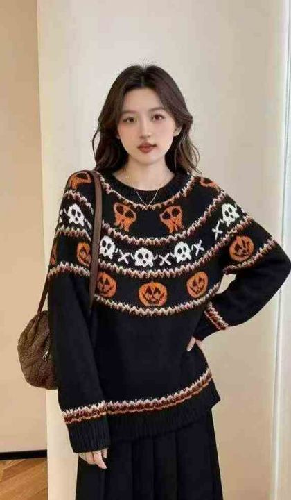 秋冬秋款宽松慵懒风提花加厚北极绒套头毛衣,独立包装...