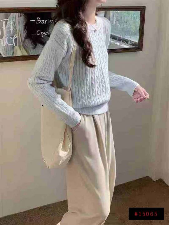 76件网红款麻花套头毛衣女内搭秋冬高级感修身圆领打底针织衫上衣,均码,独...