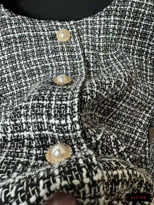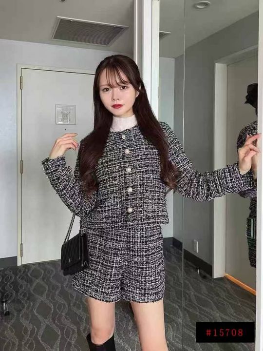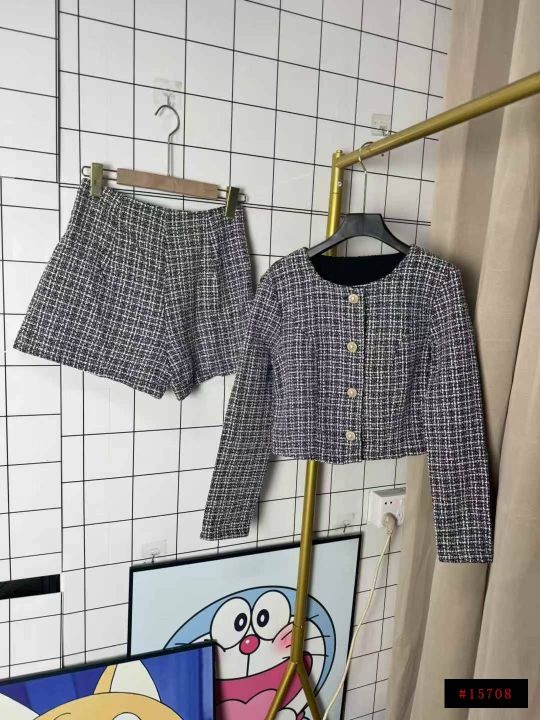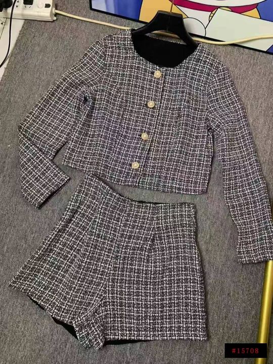 22.8清170套女装小香风外套短裤 两件套 复古圆领长袖格纹小香风粗花呢外套高腰短裤套装 码数XS- L 独立拉链包装@_@