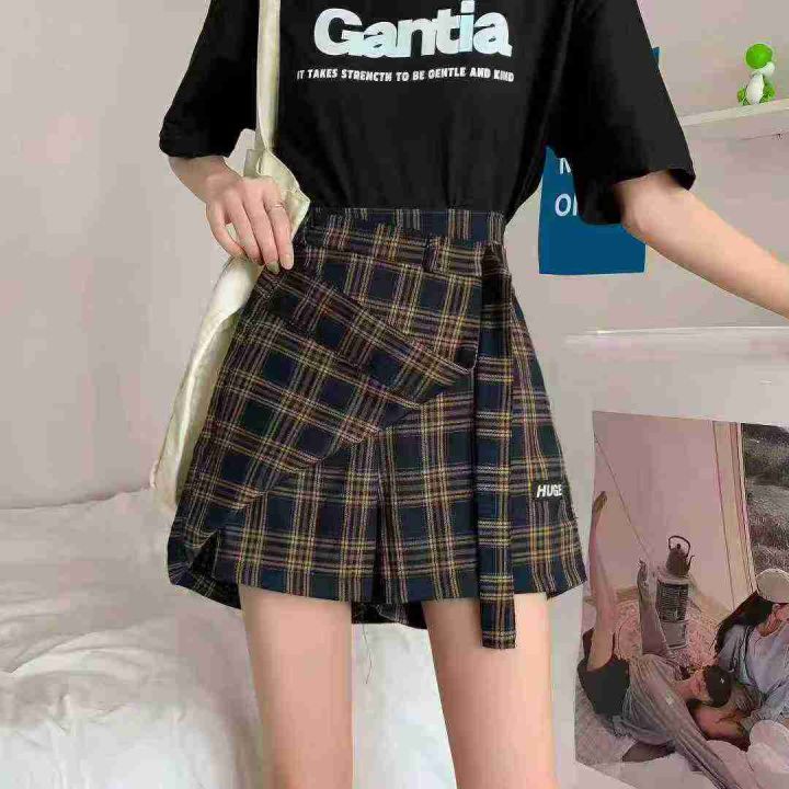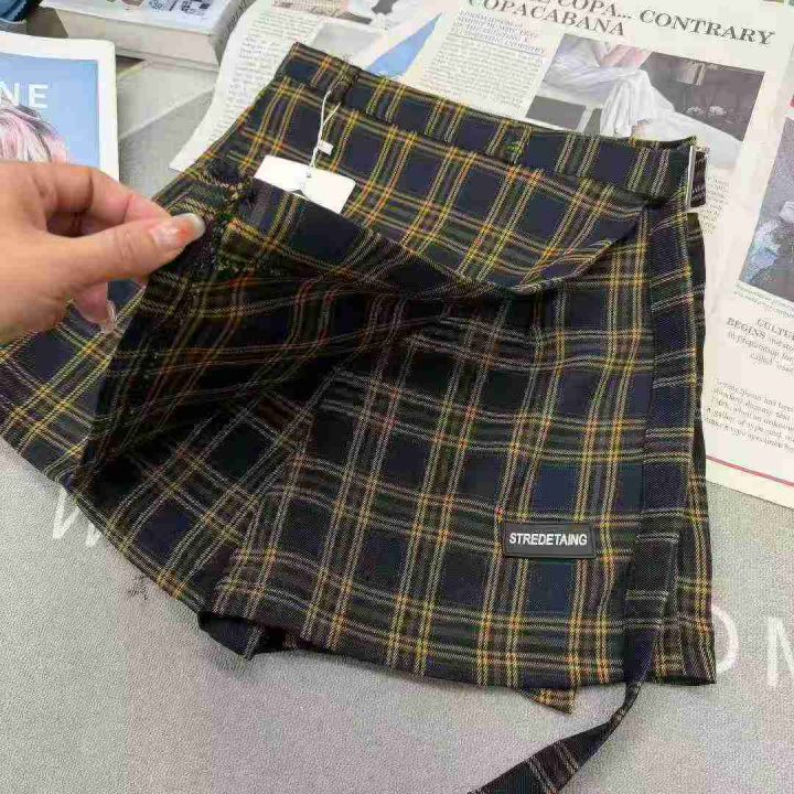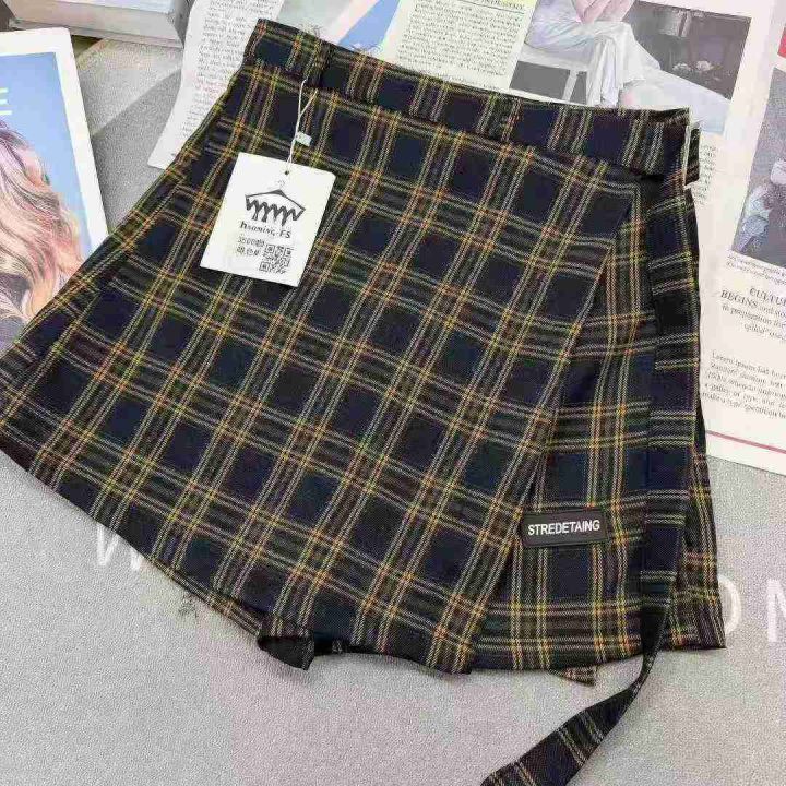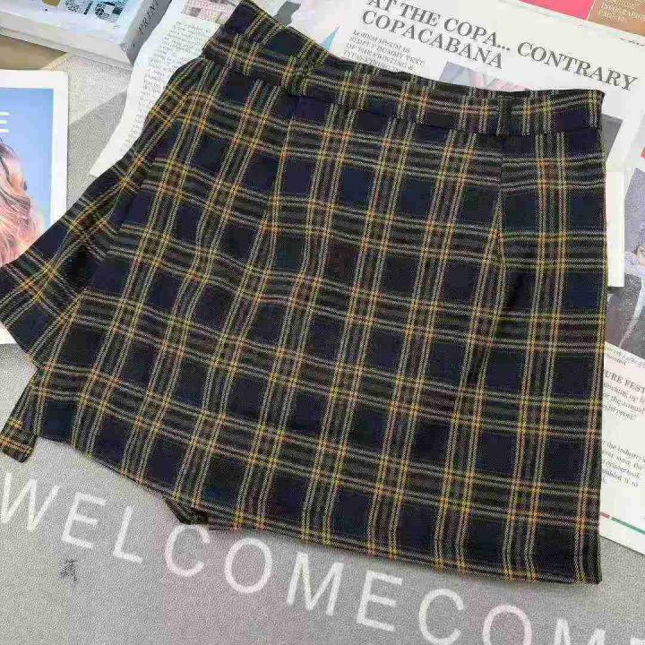 假两件不规则格子半身裙女士显瘦阔腿裤裙,单款单色,...