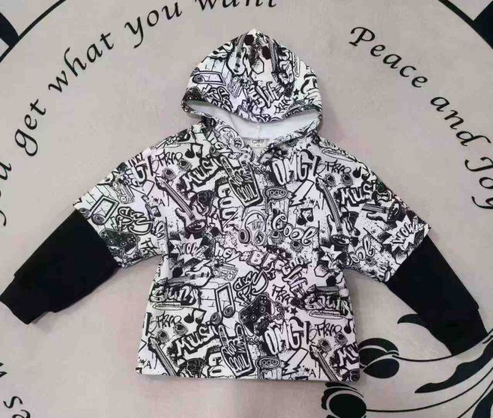 452件品牌中大童加绒冬季帅气印花假二件连帽上衣,内加BB绒,尺码110-160,整款单色,独立包装带吊牌