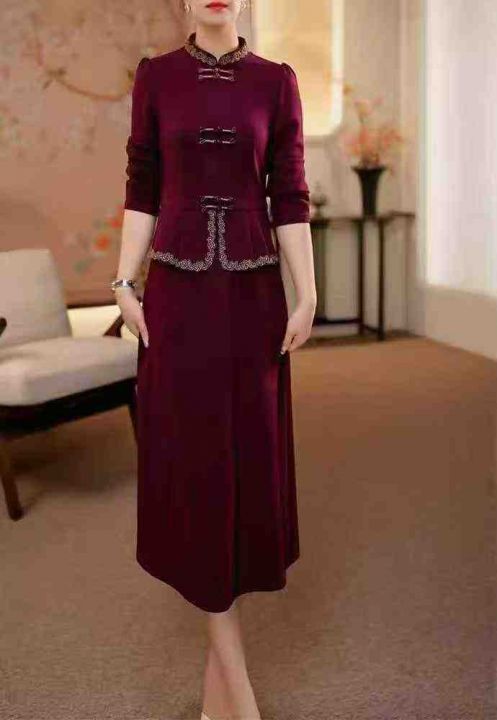 [月亮]:春秋款中式国风气质晚宴礼服连衣裙