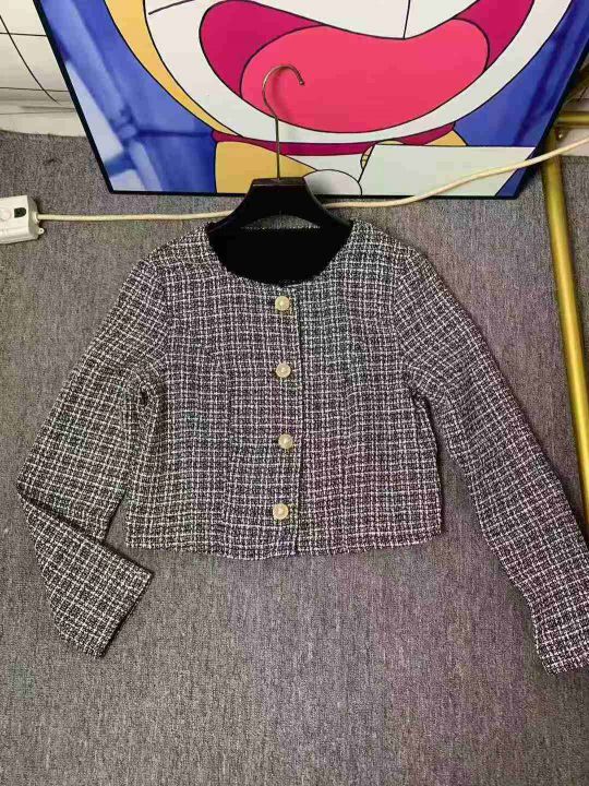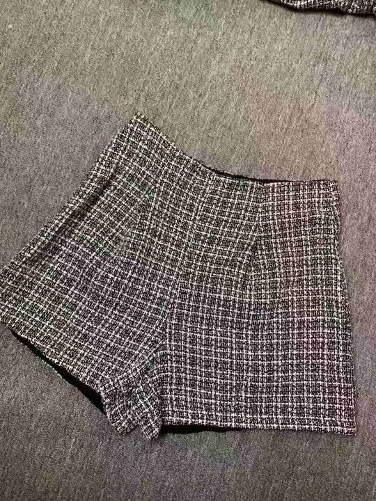22.8清170套女装小香风外套短裤 两件套 复古圆领长袖格纹小香风粗花呢外套高腰短裤套装 码数XS- L 独立拉链包装