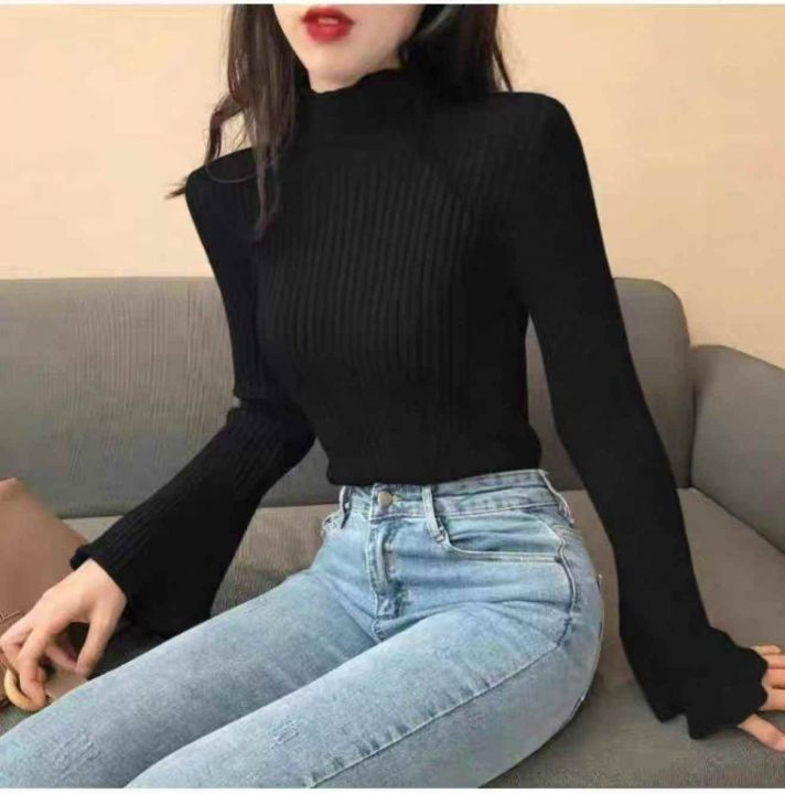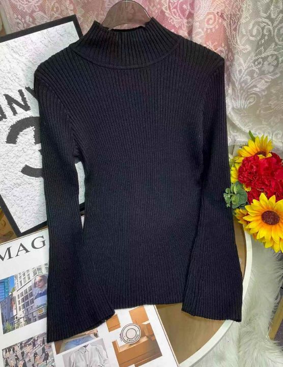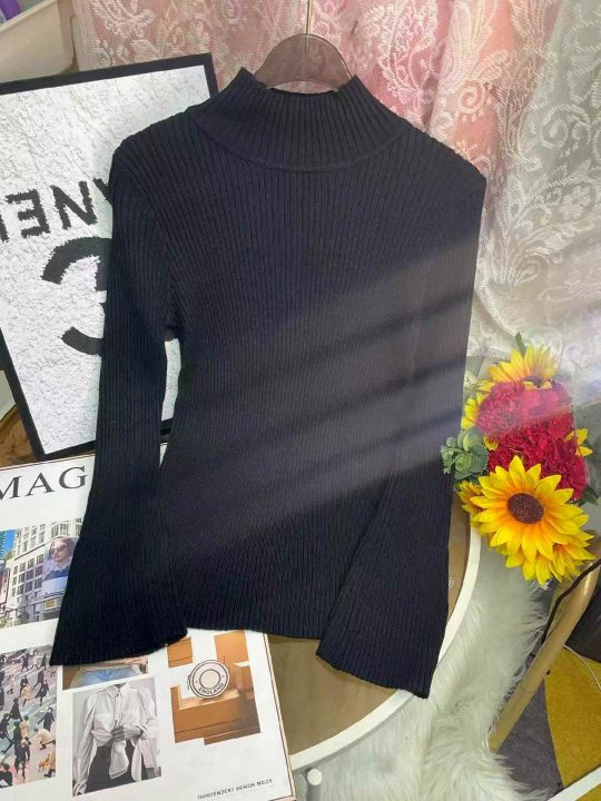 捡漏款,秋冬新款净版简约宽松坑条包芯纱喇叭袖半高领套头毛衣,独立包装,均码面料软糯厚实,35件,全清6.9元超低价秒杀!