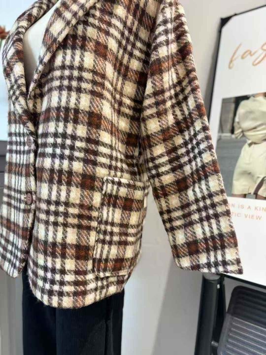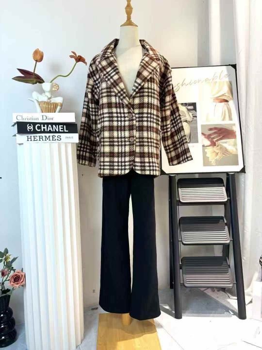 65件高品质靓妹复古格调气质格纹毛呢加厚外套,尺码S-...