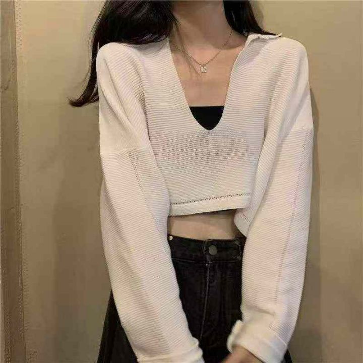 春秋新款韩系温柔风短款宽松长袖针织衫,独立包装,均码面料柔软舒适有弹力...