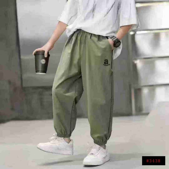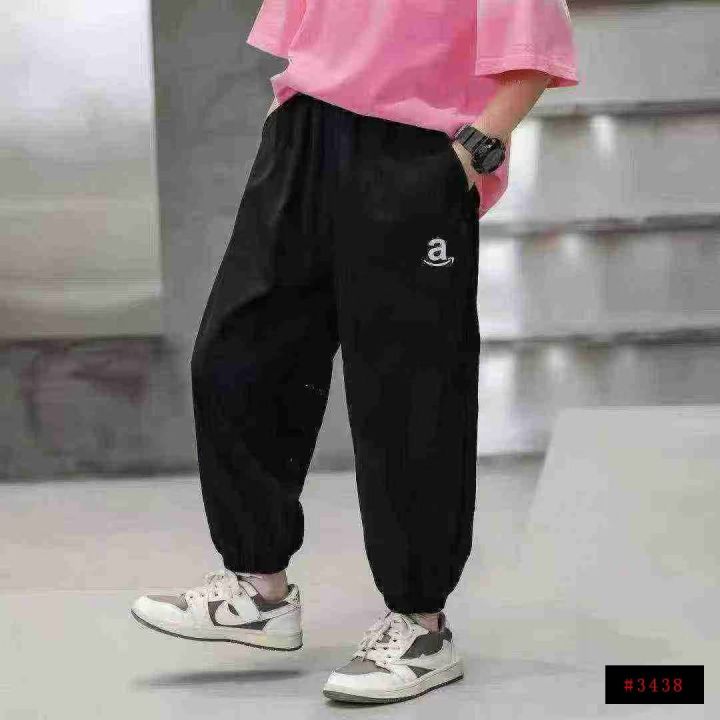 天猫在售款1000件左右高品质中大童四面弹冰丝透气束脚休闲裤,裤脚透气孔设计,带弹力,单款三色,码数120-170,独立包装@_@