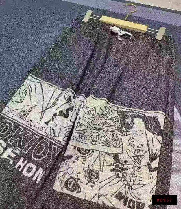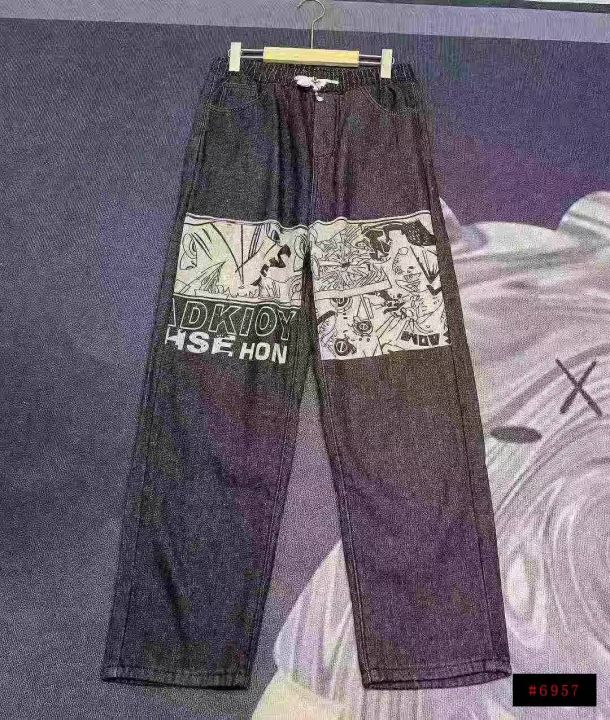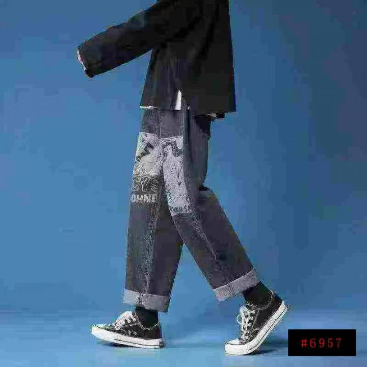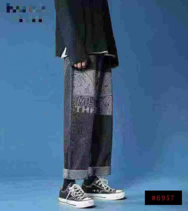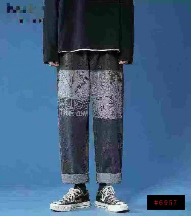 天猫在售款450件左右高品质男装潮牌个性涂鸦加绒加厚松紧腰阔腿牛仔裤,内里加黄金绒,单款单色,S-3XL,独立包装带吊牌@_@