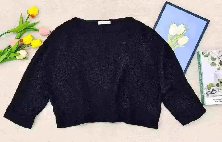 3.8元,韩版辣妹短款宽松蝙蝠中袖一字肩仿亚麻上衣,102件,M一L,独立包装,后领包条,全清3.8元,分货+0.5