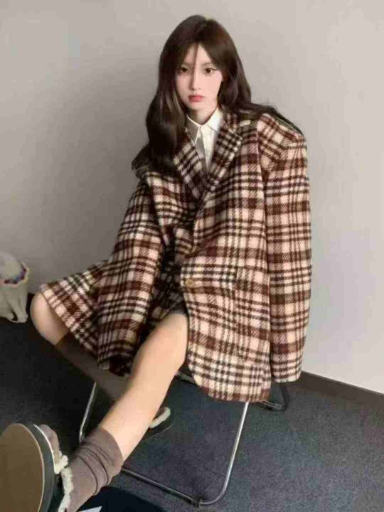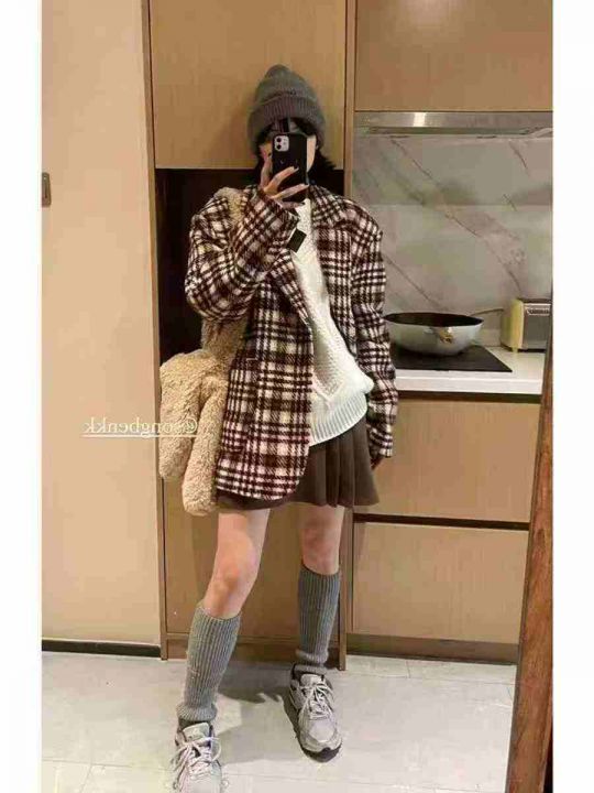 65件高品质靓妹复古格调气质格纹毛呢加厚外套,尺码S-...