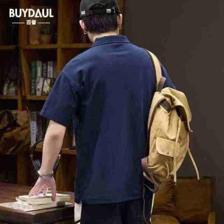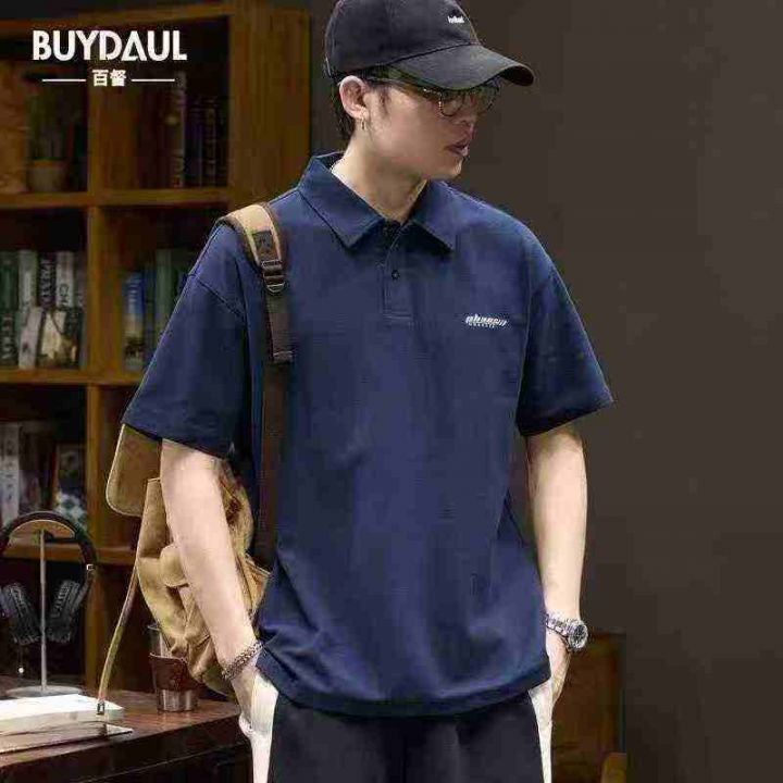 夏季男士宽松休闲翻领短袖polo衫,刺绣花,纯棉朱迪面...