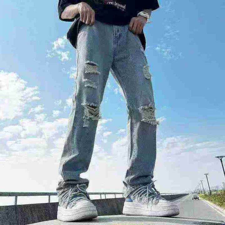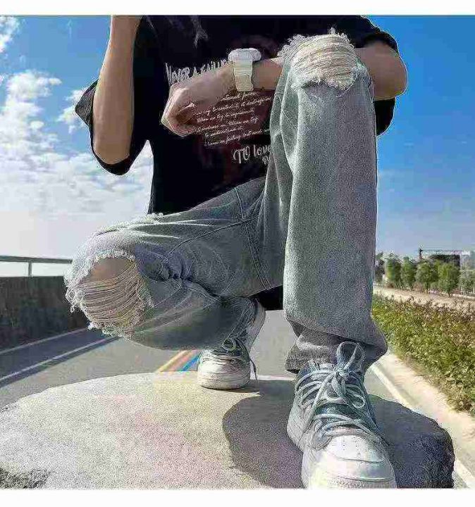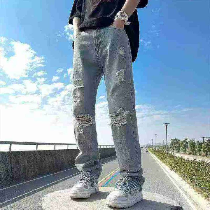 春夏季新款男士洗水棉网红破洞潮牌个性牛仔裤,独立包...