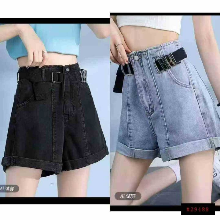 高腰时尚复古宽松显瘦阔腿卷边牛仔短裤,整款2色,独立包装,数量150条,S....