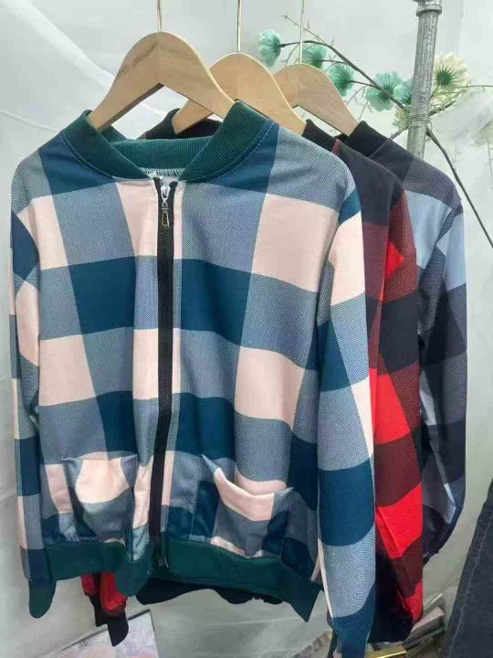 妈妈装圆领拉链夹克开衫春秋款,百搭格子款外套,加绒/不加绒各一半左右,整款3色,独立包装,3.5.6.8码,1060件左右,5.8元清分货➕1。 货号:24862