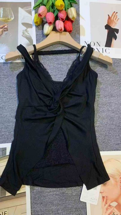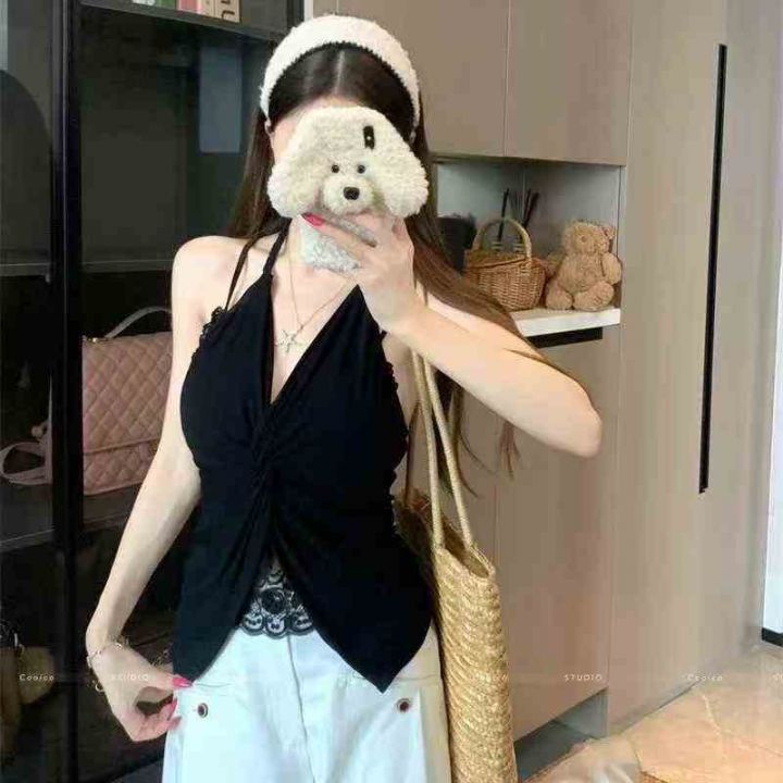 纯欲风挂脖吊带蕾丝拼接辣妹上衣,[爱心]100件左右,黑色为主,码数S-L,穿70-120斤,[666]工厂原包装瑕疵,分货加一
