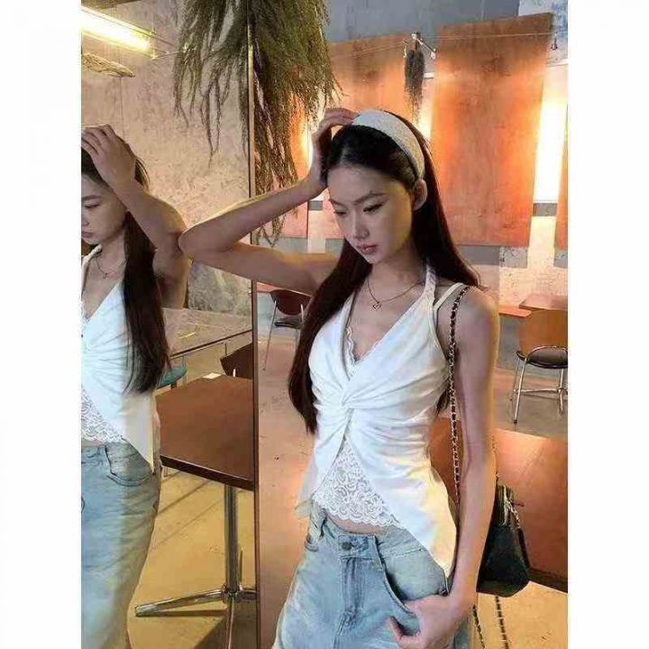 上新全清:4.9一件纯欲风挂脖吊带蕾丝拼接辣妹上衣,[...