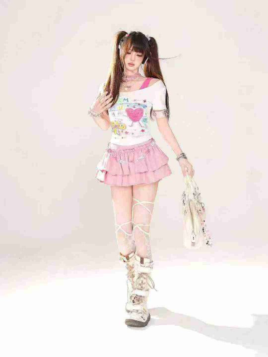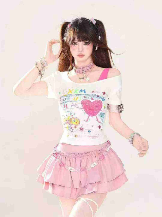 [月亮]:夏季新款涂鸦印花露肩设计纯棉辣妹上衣