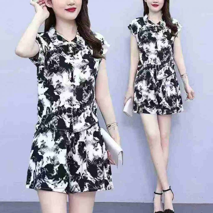 全清价8.8元国风女装休闲时尚两件套装夏天中式雪纺印...