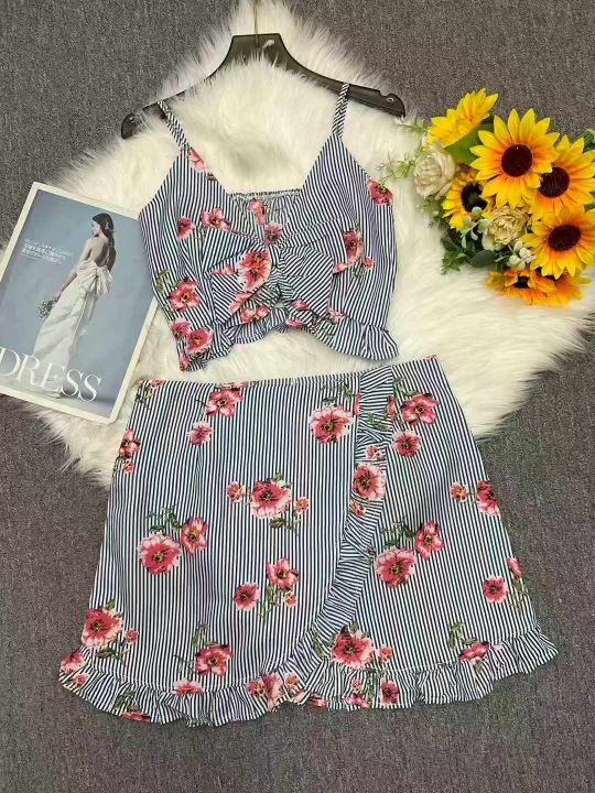 品牌外贸原单辣妹性感女装吊带背心+休闲短裤2件套,独...