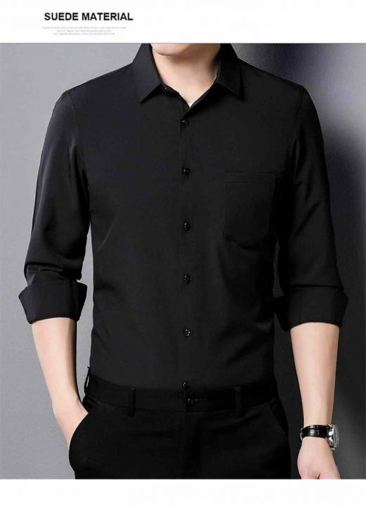 品牌原单男士春秋新款净版简约宽松商务休闲长袖衬衣,...