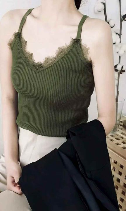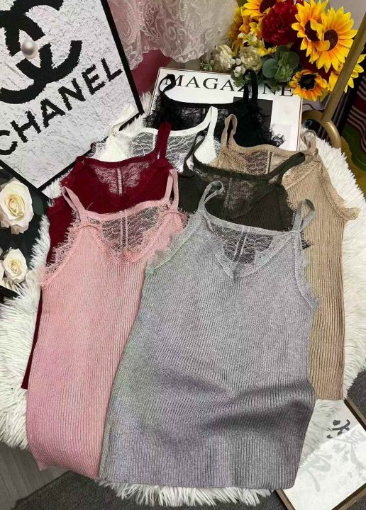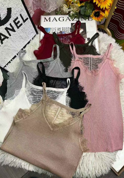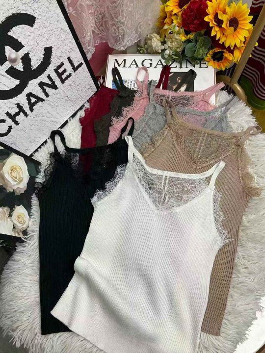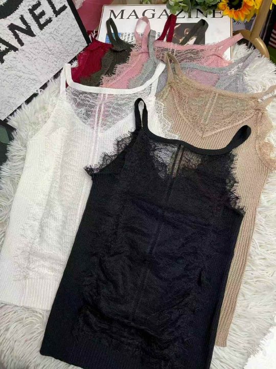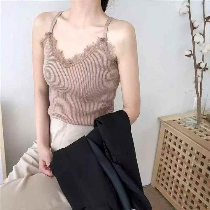夏季新款性感蕾丝拼港味复古弹力修身显瘦针织吊带,独...