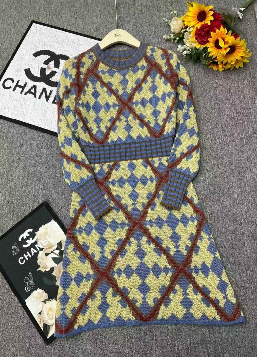 秋冬新款小香风提花北极绒毛衣连衣裙,独立包装,均码...