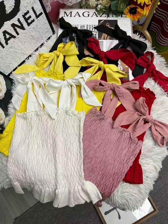 夏季新款纯欲飘带蝴蝶结设计感性感弹力显瘦针织背心,独立包装,均码面料柔软舒适弹力大,860件,全清4.9元超低价秒杀!分货加一!