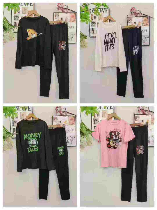 数量13200套,码数S一5XL,190克牛奶丝磨毛面料,面料柔软高弹力,全部独立包装,有长裤长袖套装,有长裤短袖套装,有短袖短裤套装,图案多,整杂图案,500起分货➕1