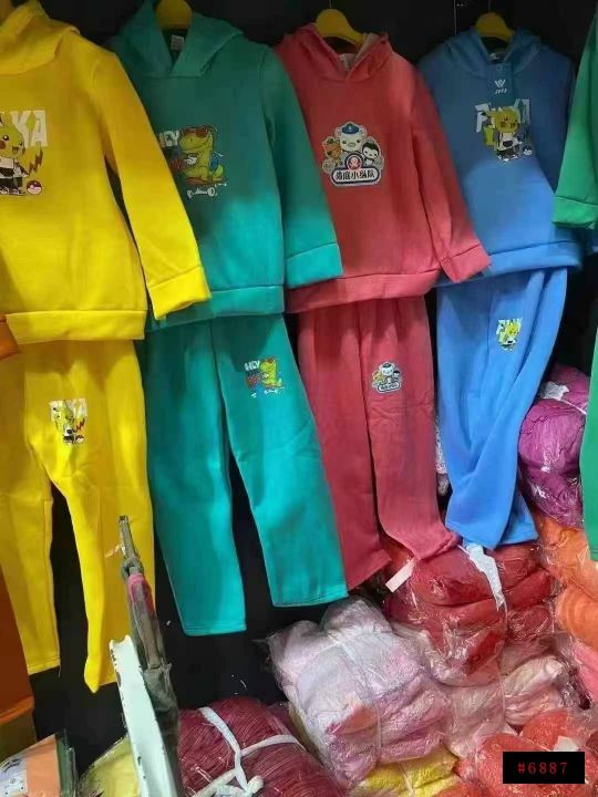 [太阳]全清9.9元、100件起10.9元,3000件加绒童装连帽套装卫衣,一捆三个码数2-8岁,花型颜色多多均配@_@