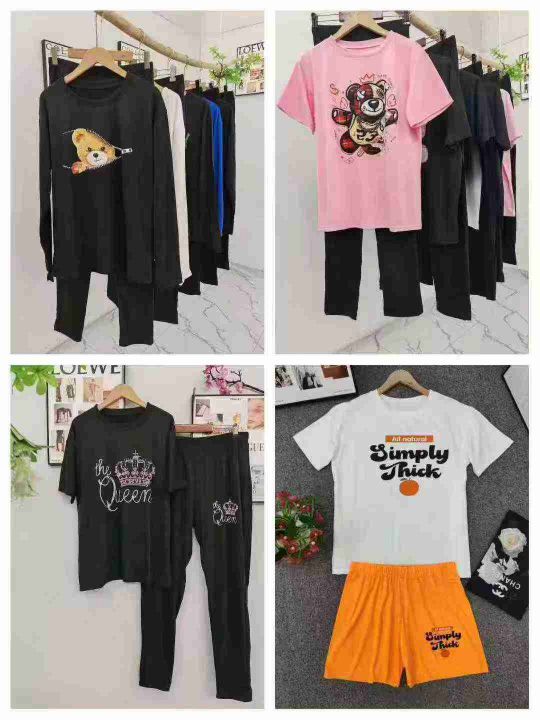 数量13200套,码数S一5XL,190克牛奶丝磨毛面料,面料柔软高弹力,全部独立包装,有长裤长袖套装,有长裤短袖套装,有短袖短裤套装,图案多,整杂图案,500起分货➕1