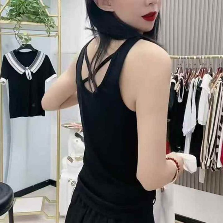 U领冰丝吊带女夏法式别致高级感交叉设计修身背心上衣,拉链独立包装 5300...