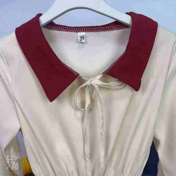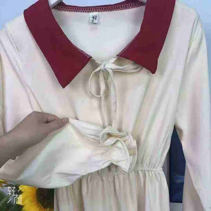 撞色领系带复古长袖连衣裙,秋冬款,码数均码,独立包装货品干净,30条全清7.8