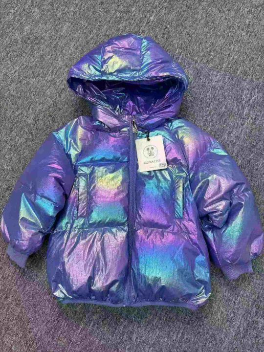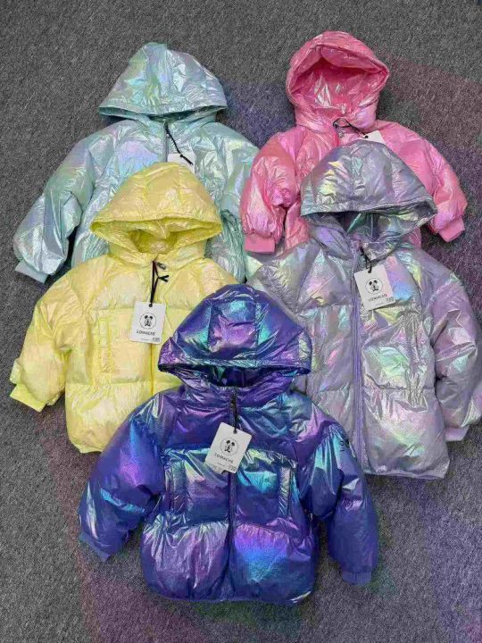 1000件男女童装外套荧光渐变亮面炫彩羽绒服,整款多个颜色,独立原包装带吊牌,码数100一150,全清21.8分货加1