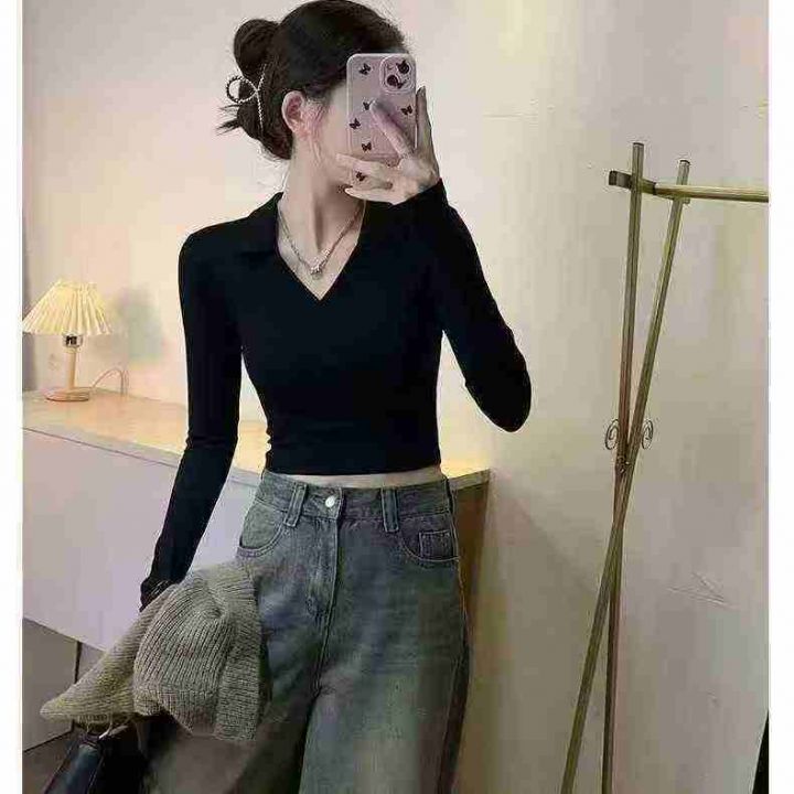 1200件韩系辣妹polo领显瘦露脐紧靓妹长袖T恤,尺码xs-...