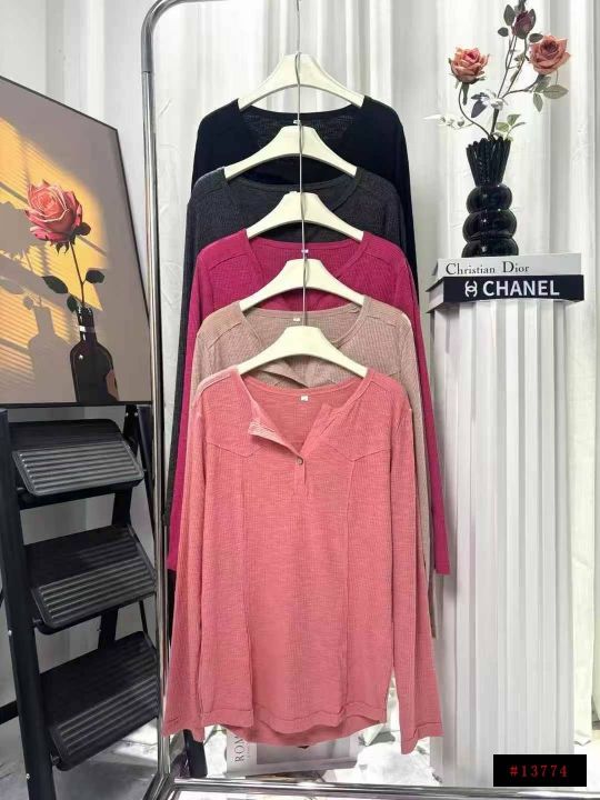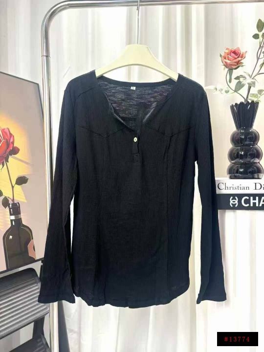 2230件韩系早秋新款宽松V领显瘦内搭打底衫上衣,含棉...