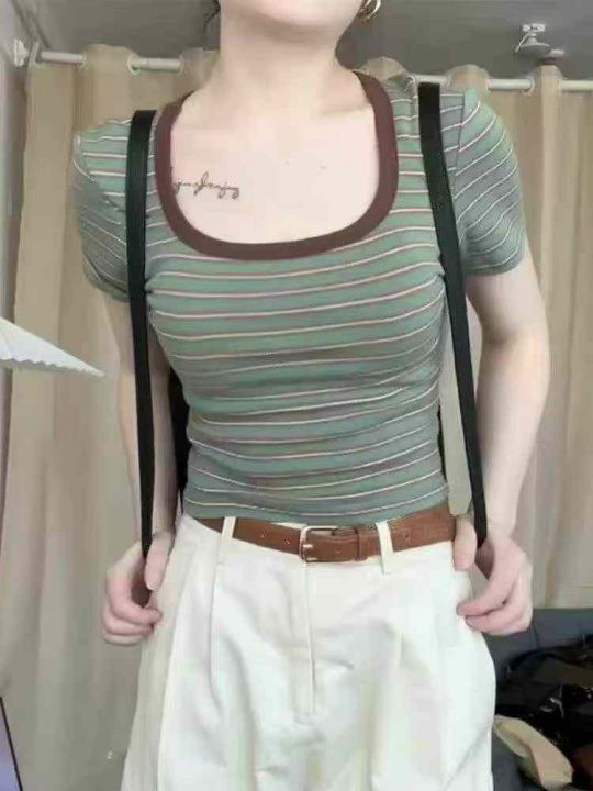 [月亮]:5.9清149件(不分货)[月亮]:复古撞色U领正肩条纹T恤[月亮]:1234...