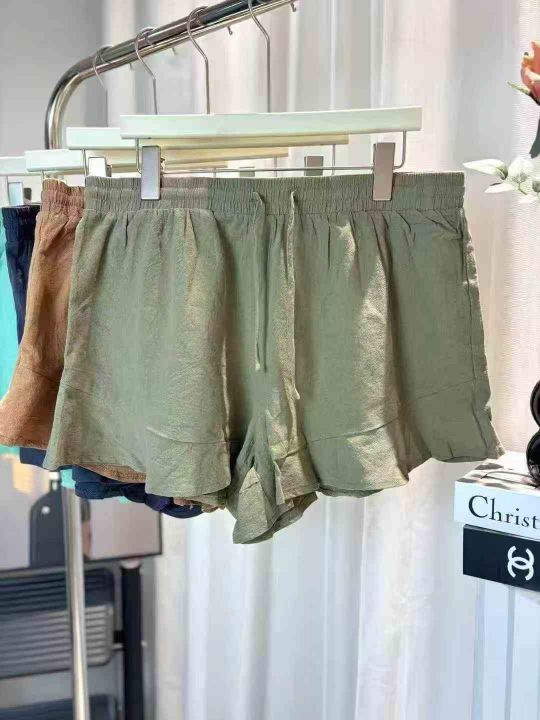 830条高品质棉麻荷叶边松紧腰抽绳设计短裤,宽松休闲大版型,单款多色,品质好!尺码S-XL,独立包装!福利秒杀价4.8
