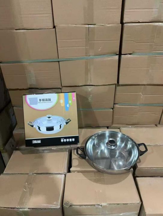 28公分汤锅,加厚不锈钢复低火锅,带彩盒,原箱原件处理800个。