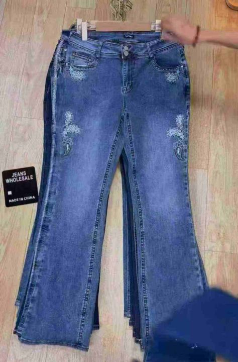 外单高弹力微喇叭修身图片系列款牛仔裤,数量868条,尺码s-3xl码(版型偏大偏长),独立包装带吊牌,重工艺绣花款。有的绣花是在后口袋上。低价批发13.9秒杀
