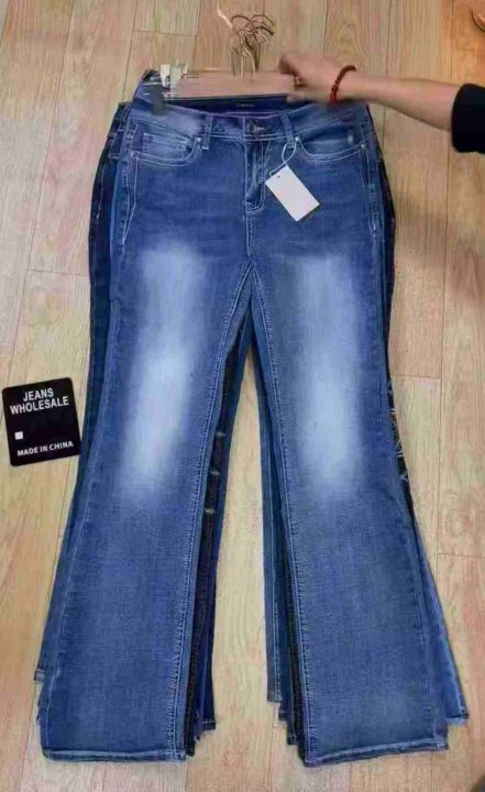 #Jeans wholesale外单高弹力微喇叭修身图片系列款牛仔...