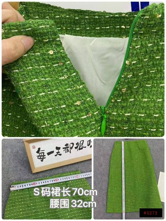 小香风格纹半身裙300件7.5,格纹➕金色亮片设计,做工...