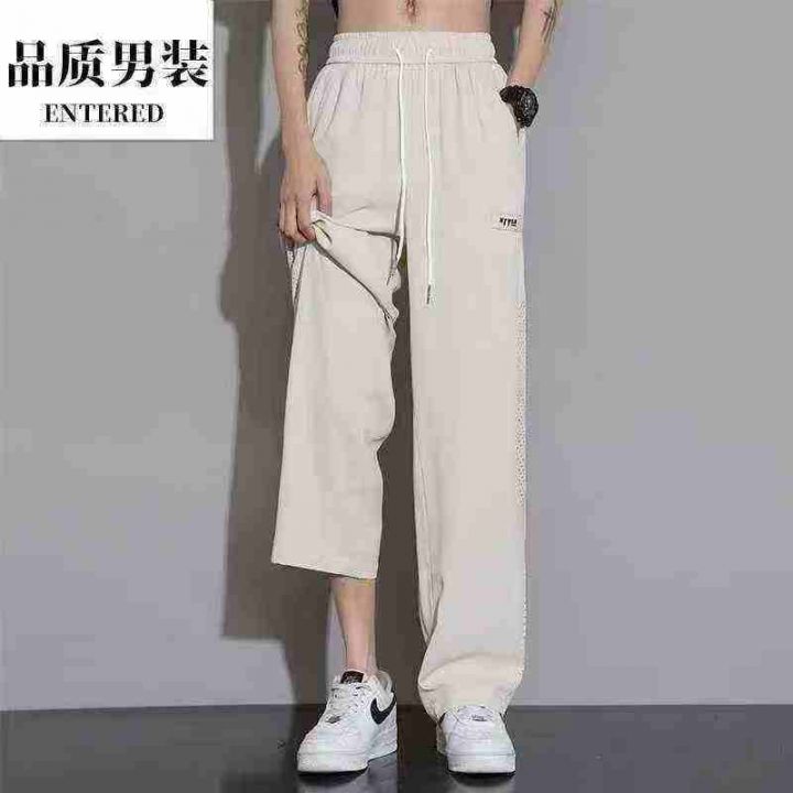 清8.8分货➕1男装夏款冰丝裤子季透气潮牌阔腿运动裤宽松直筒休闲纯色长裤,...