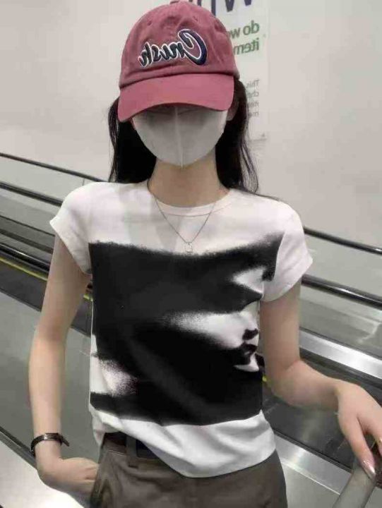 ☕️彩虹条纹方领短袖t恤女冰丝针织短款上衣超好看辣妹T恤156件全清8.8元,...