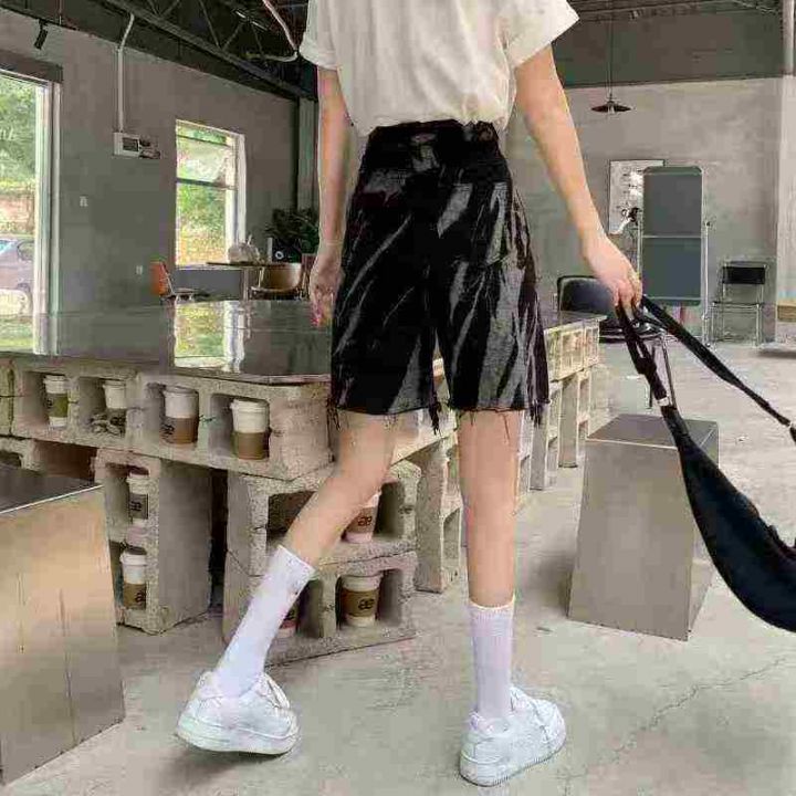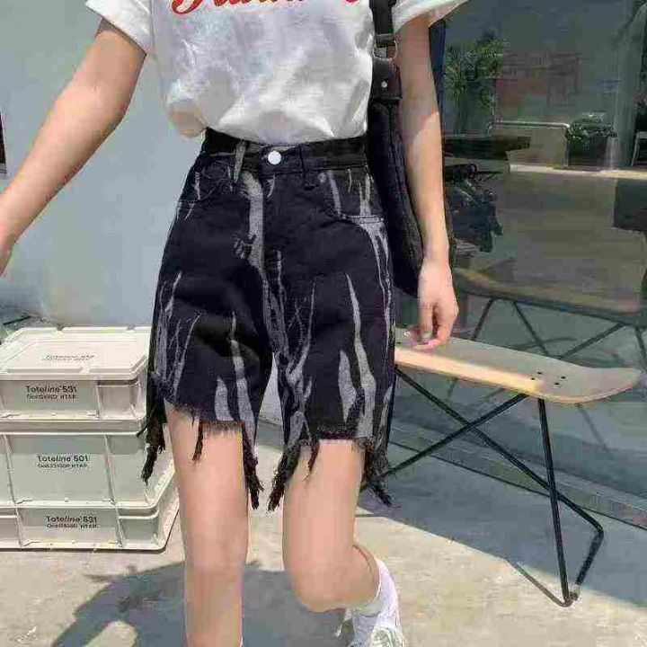 ☕️个性扎染牛仔五分裤440条全清8.8元,码数S M L ,独立包装。牛仔直筒港味夏季新款网红高腰扎染设计感不规则中裤