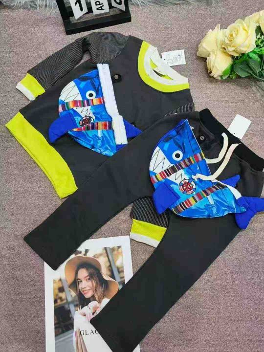4.8清,810件日系童装春秋季毛圈圆领卫衣整款两色,裤子270条,可以自行配套,每件带有挎包,码数95-140,独立包装带吊牌。。 货号:24862