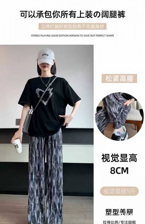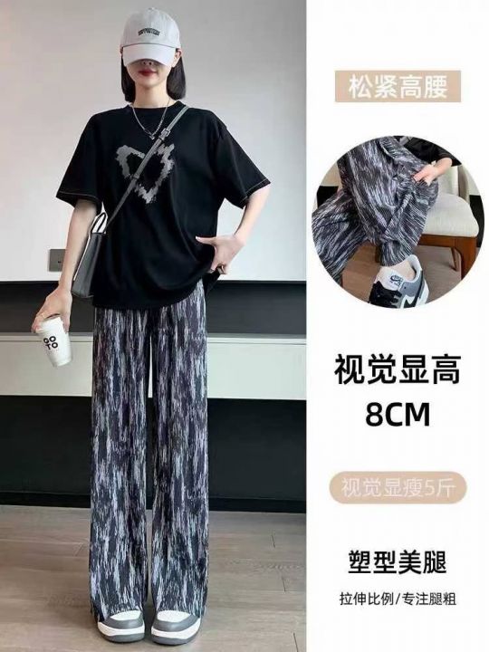 冰凉感直筒冰丝阔腿裤女夏季薄款休闲防蚊显瘦垂感扎染裤子,独立包装,码数M-2XL(2-5)数量496条,3码裤长100厘米,货号0915#54@_@