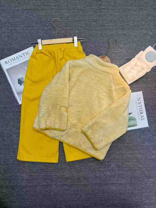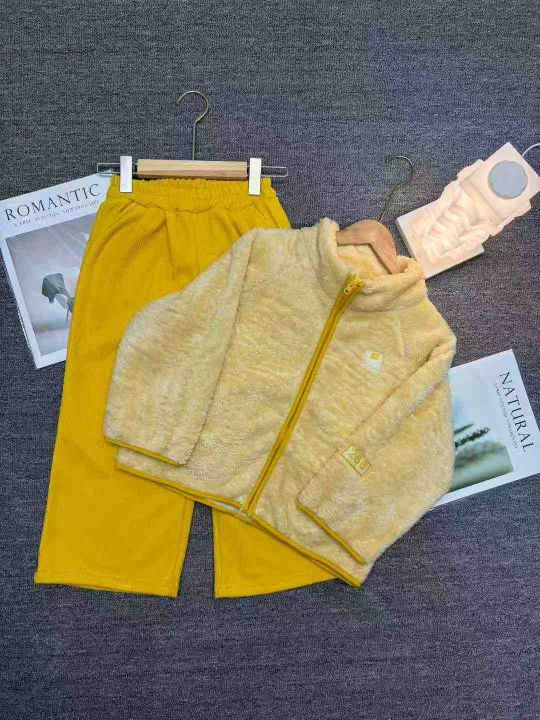 小孩自留款100套左右高品质中大童秋冬保暖加绒加厚韩范毛毛两件套套装,内里加摇粒绒,单款单色,码数110-170,独立包装带吊牌