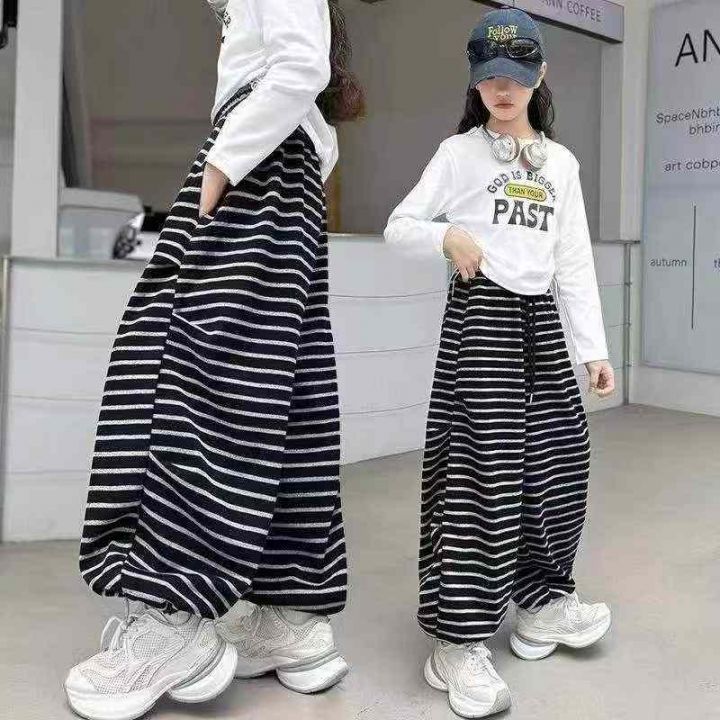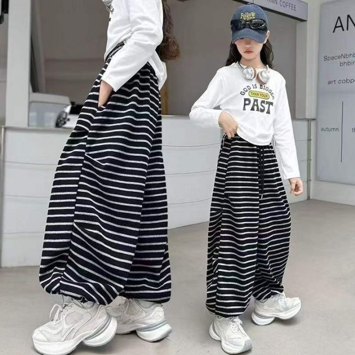 春秋新款撞色条纹男女童通知休闲斜纹棉卫裤,独立包装,图片款,码数110-14...