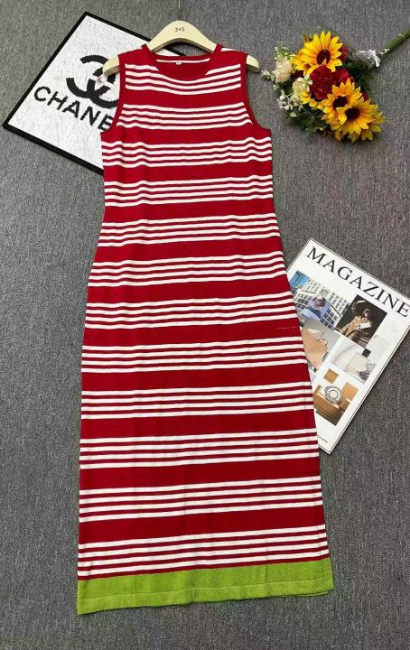 夏季新款撞色条纹韩系冰丝开叉大长款针织背心连衣裙,独立包装,均码面料软糯舒适弹力大,210件,全清8.9元超低价秒杀!分货加一!